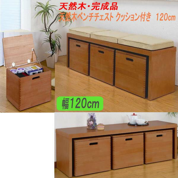 [送料無料※一部地域除く]天然木ベンチチェスト 120cm幅 クッション付き ※メーカー直送品※